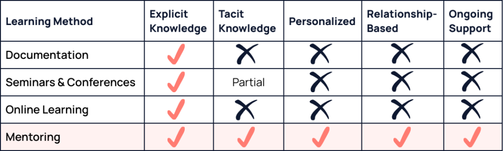 Now let's compare these approaches with mentoring: